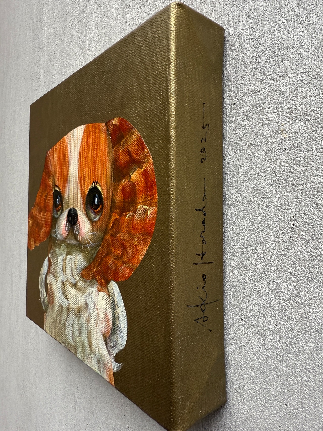 ●作品はサイドにもペイントされてる為、額なしでも展示物として成り立ちます。厚みのあるキャンバスにより壁に大きくできる影も展示の要素としてお楽しみください。