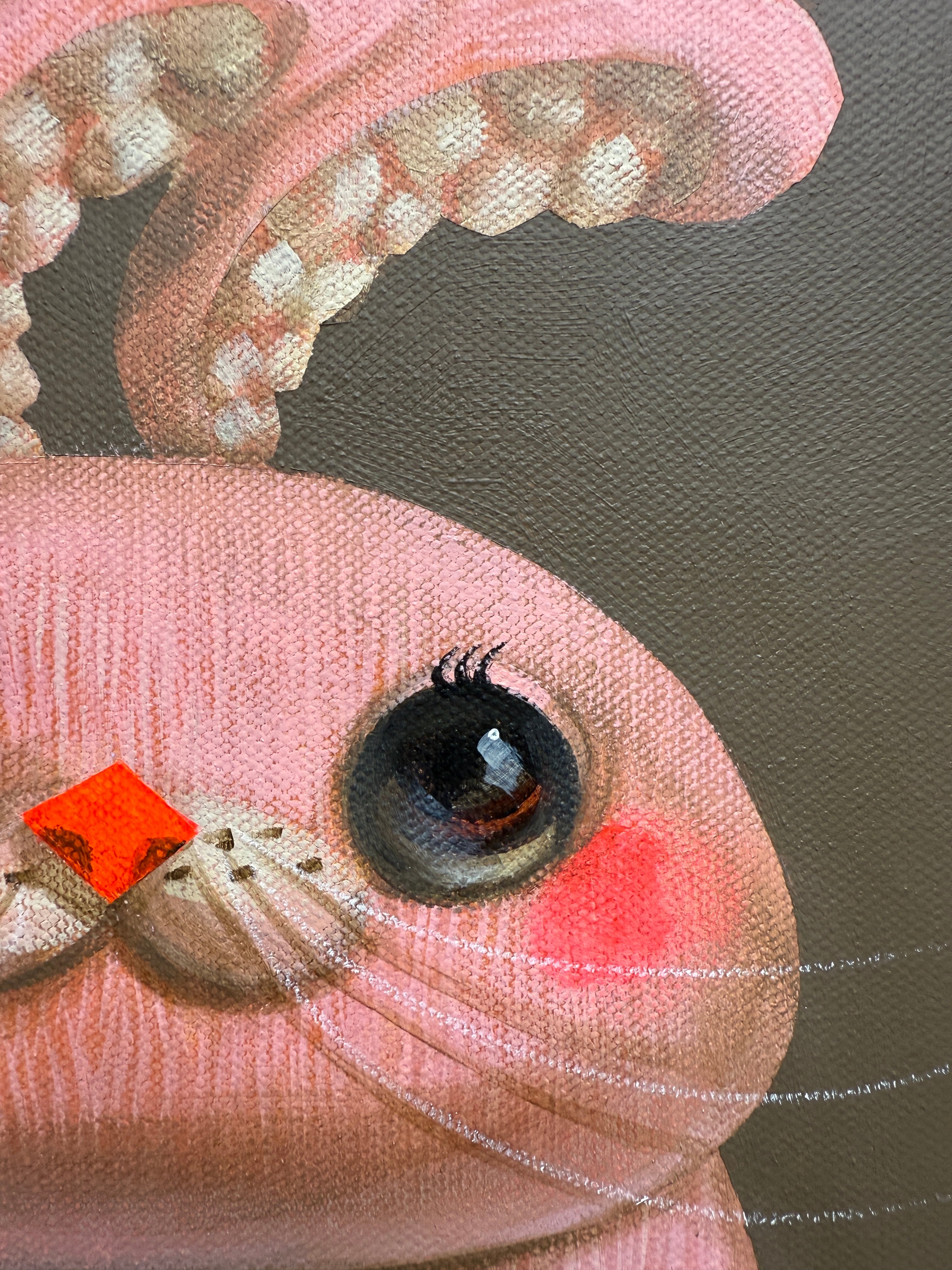●作品はサイドにもペイントされてる為、額なしでも展示物として成り立ちます。厚みのあるキャンバスにより壁に大きくできる影も展示の要素としてお楽しみください。