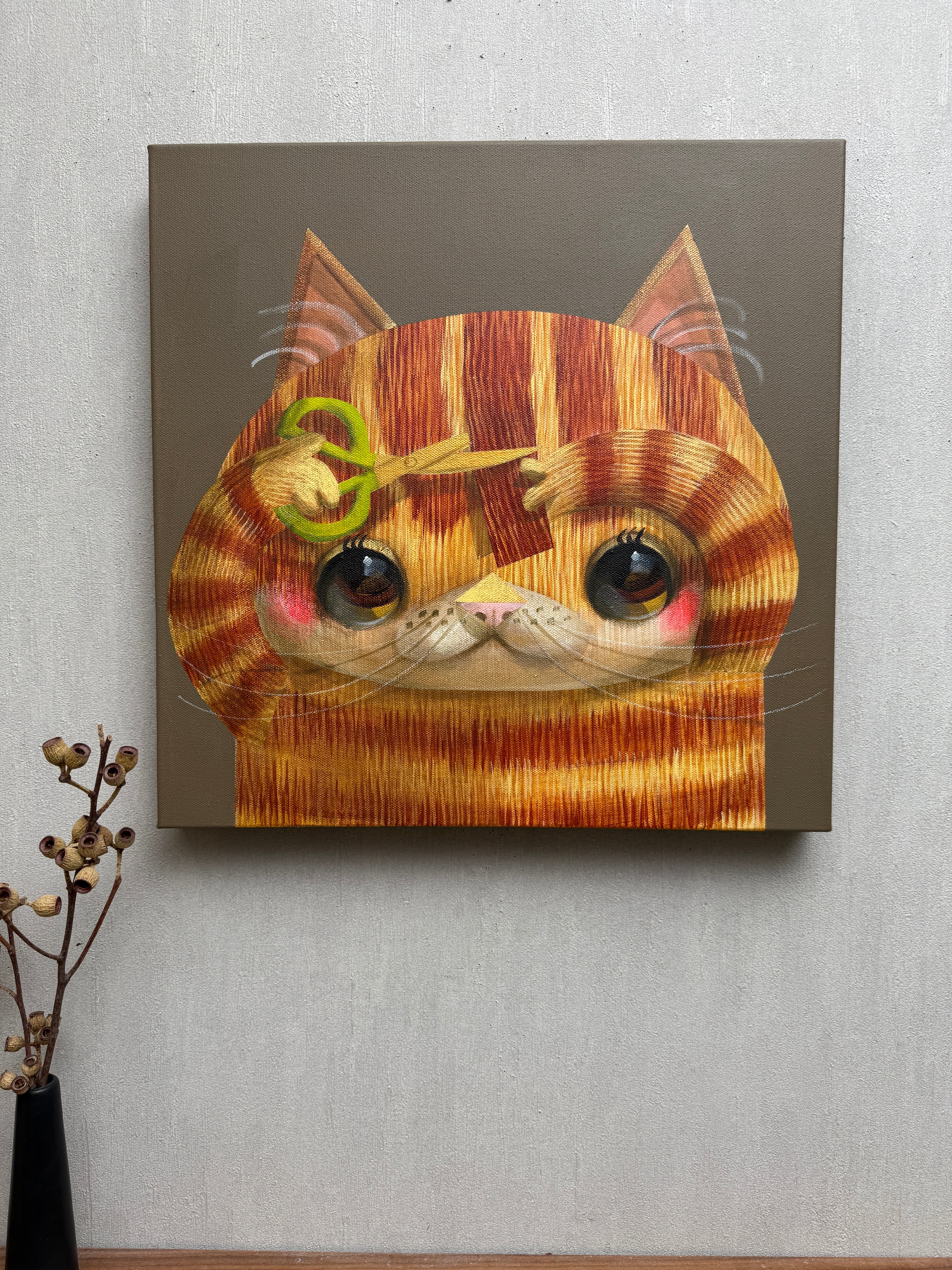 ●作品はサイドにもペイントされてる為、額なしでも展示物として成り立ちます。厚みのあるキャンバスにより壁に大きくできる影も展示の要素としてお楽しみください。