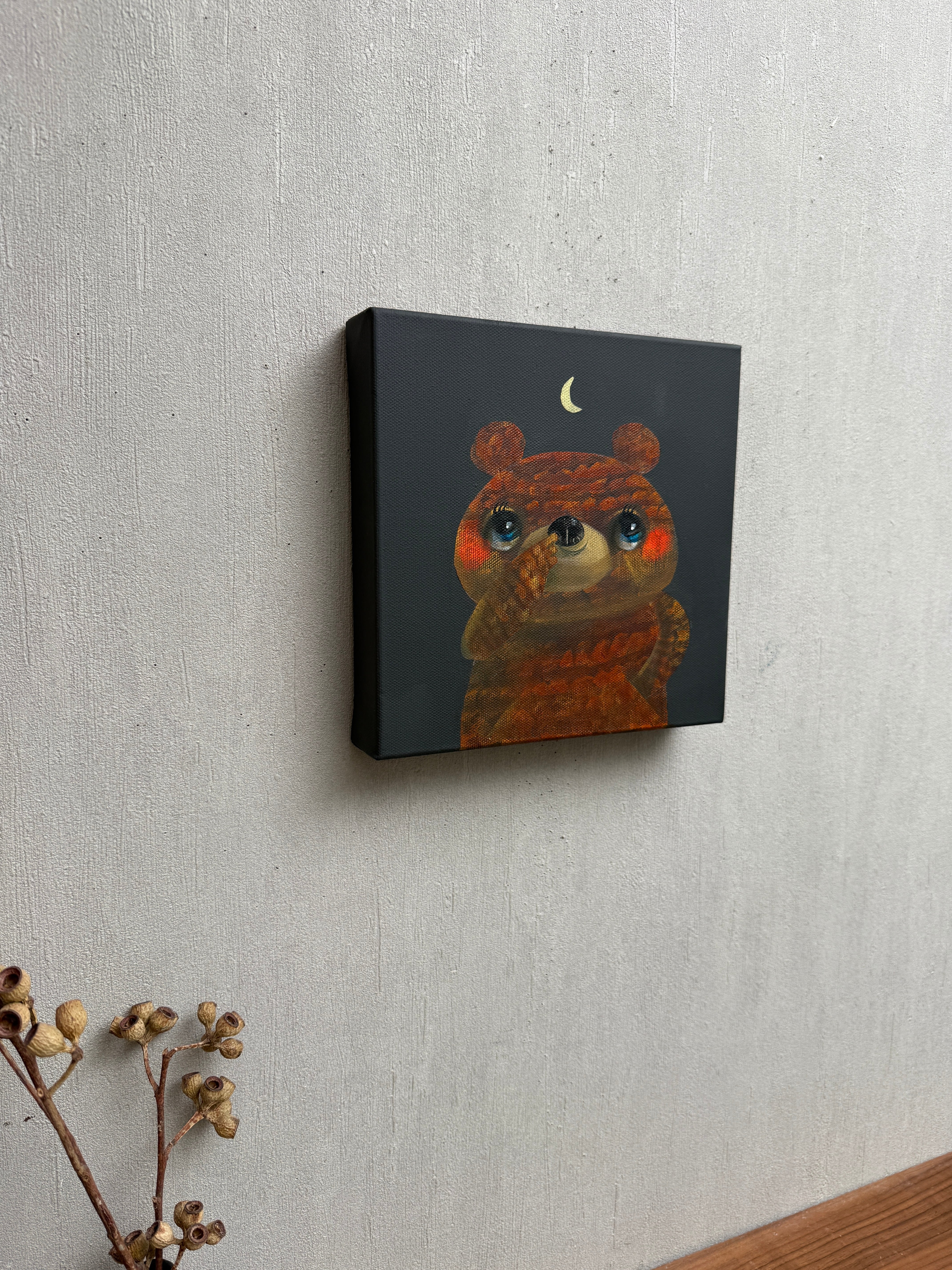 ●作品はサイドにもペイントされてる為、額なしでも展示物として成り立ちます。厚みのあるキャンバスにより壁に大きくできる影も展示の要素としてお楽しみください。