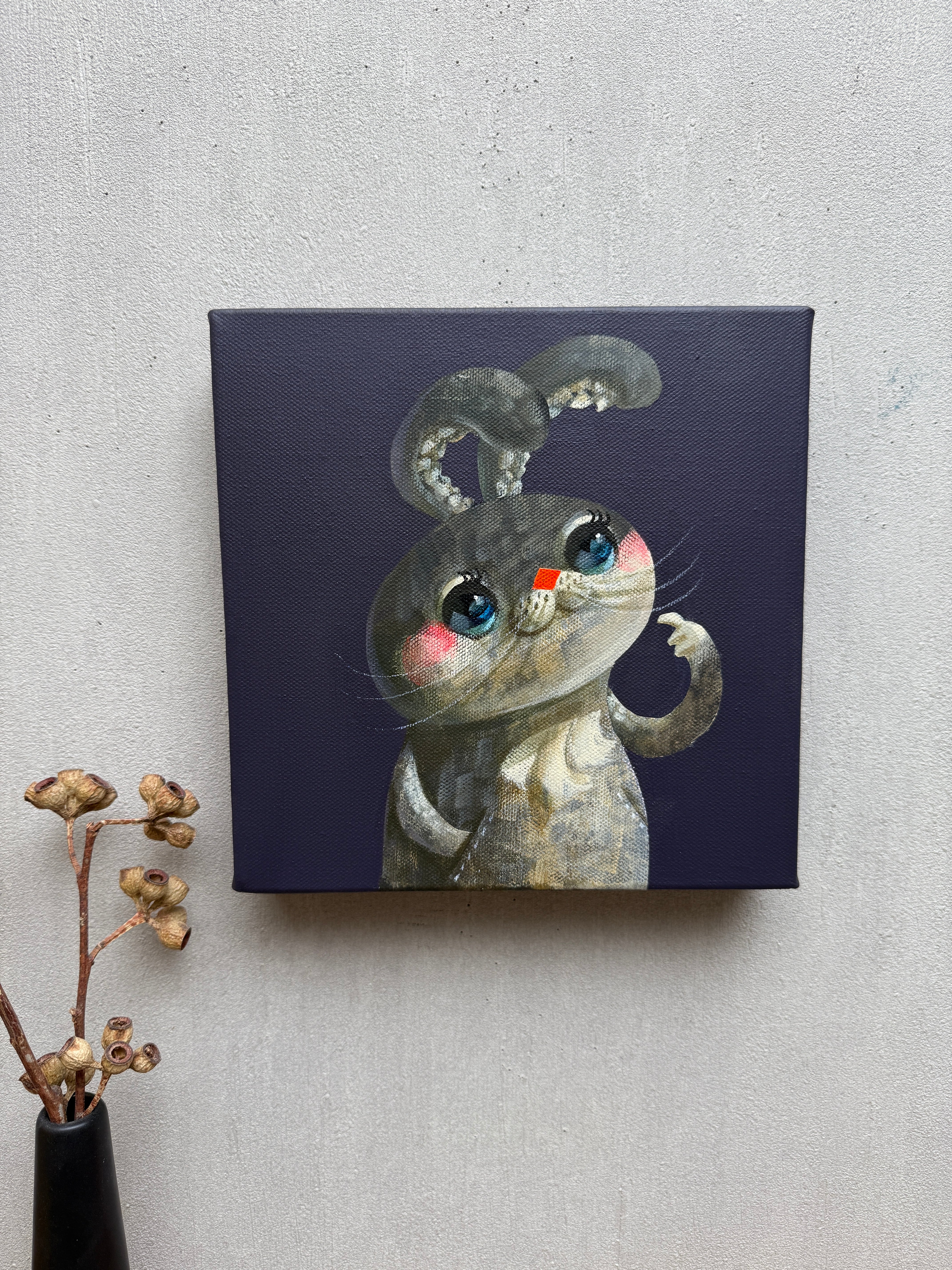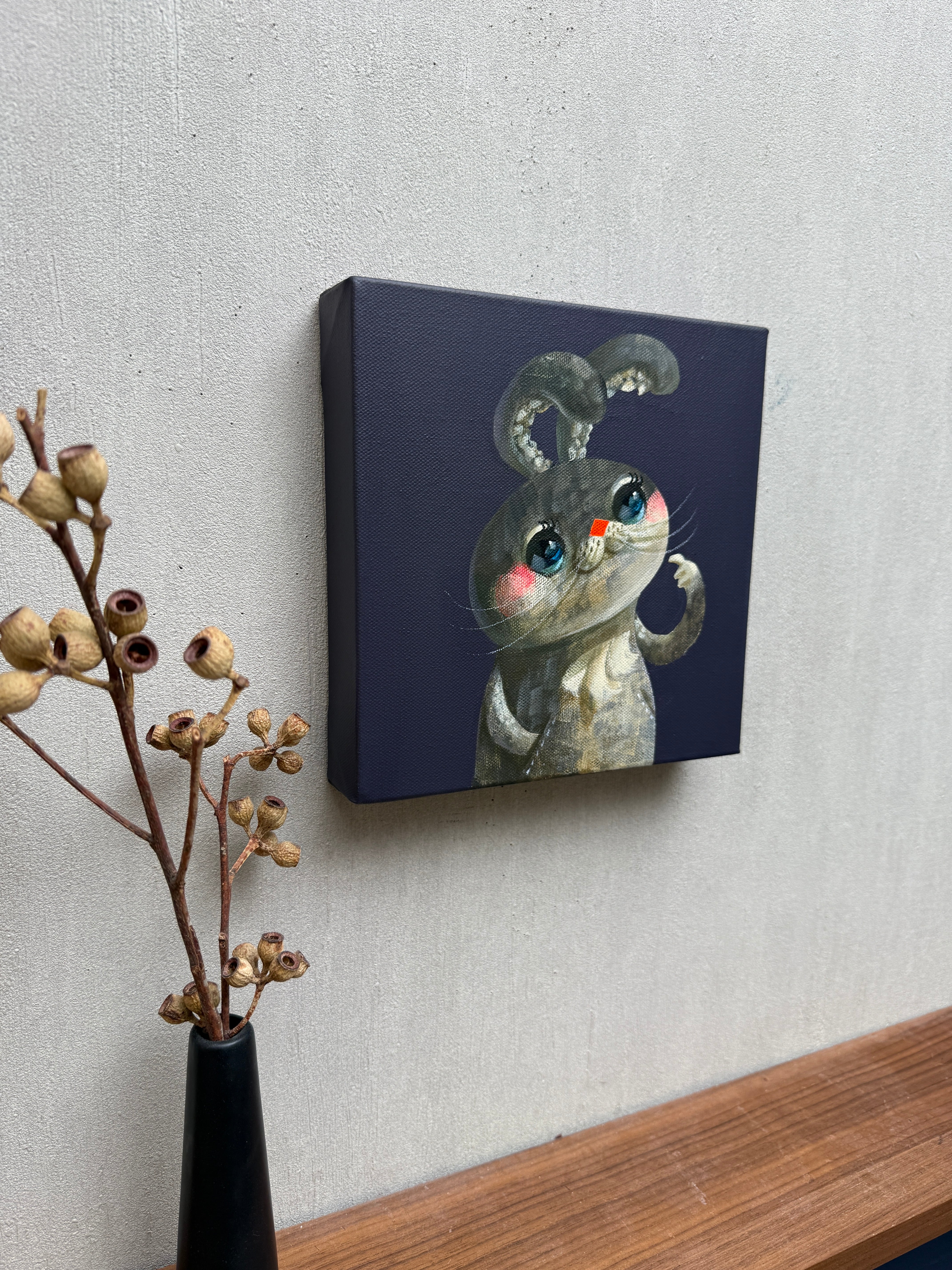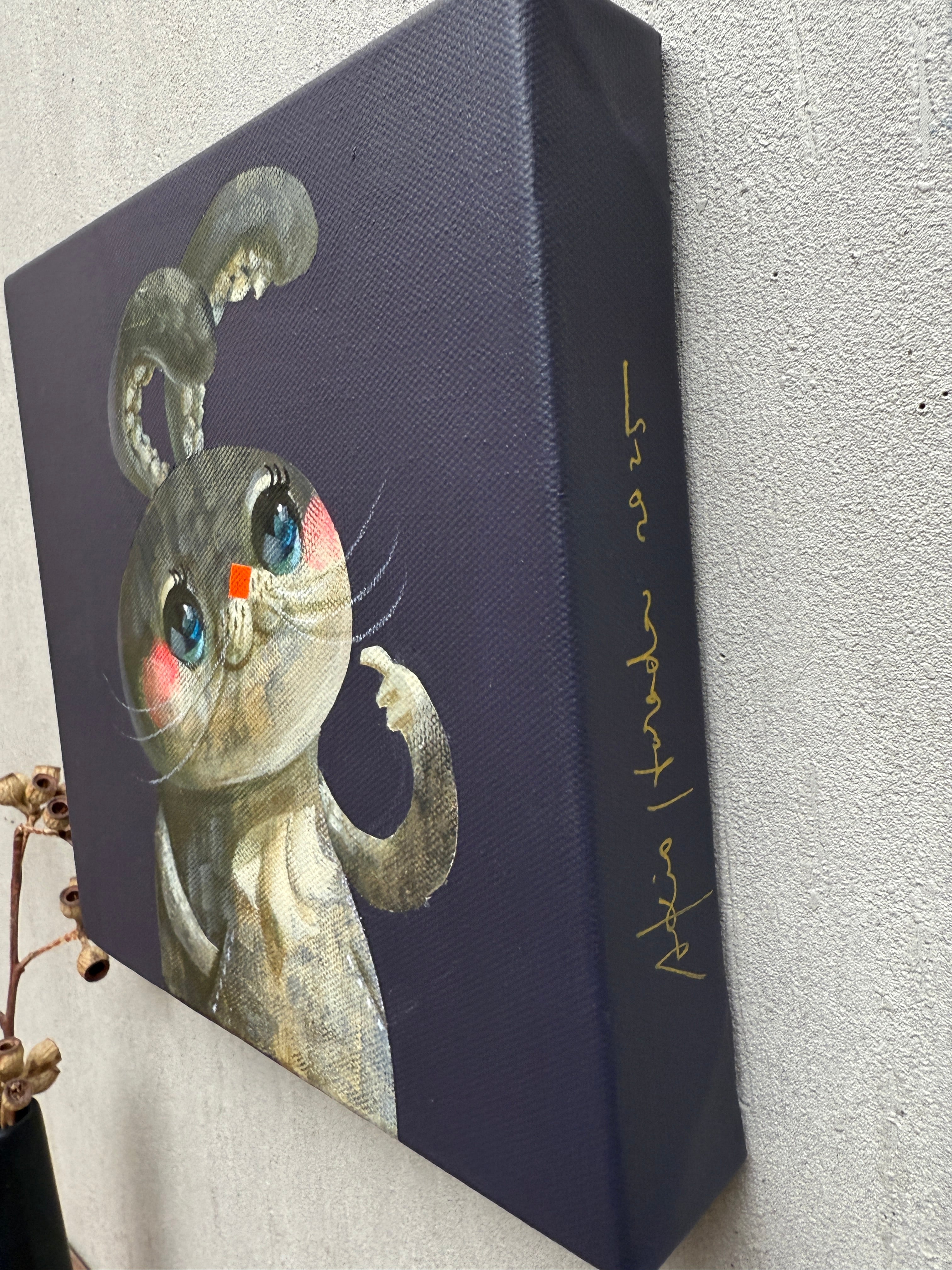 ●作品はサイドにもペイントされてる為、額なしでも展示物として成り立ちます。厚みのあるキャンバスにより壁に大きくできる影も展示の要素としてお楽しみください。
