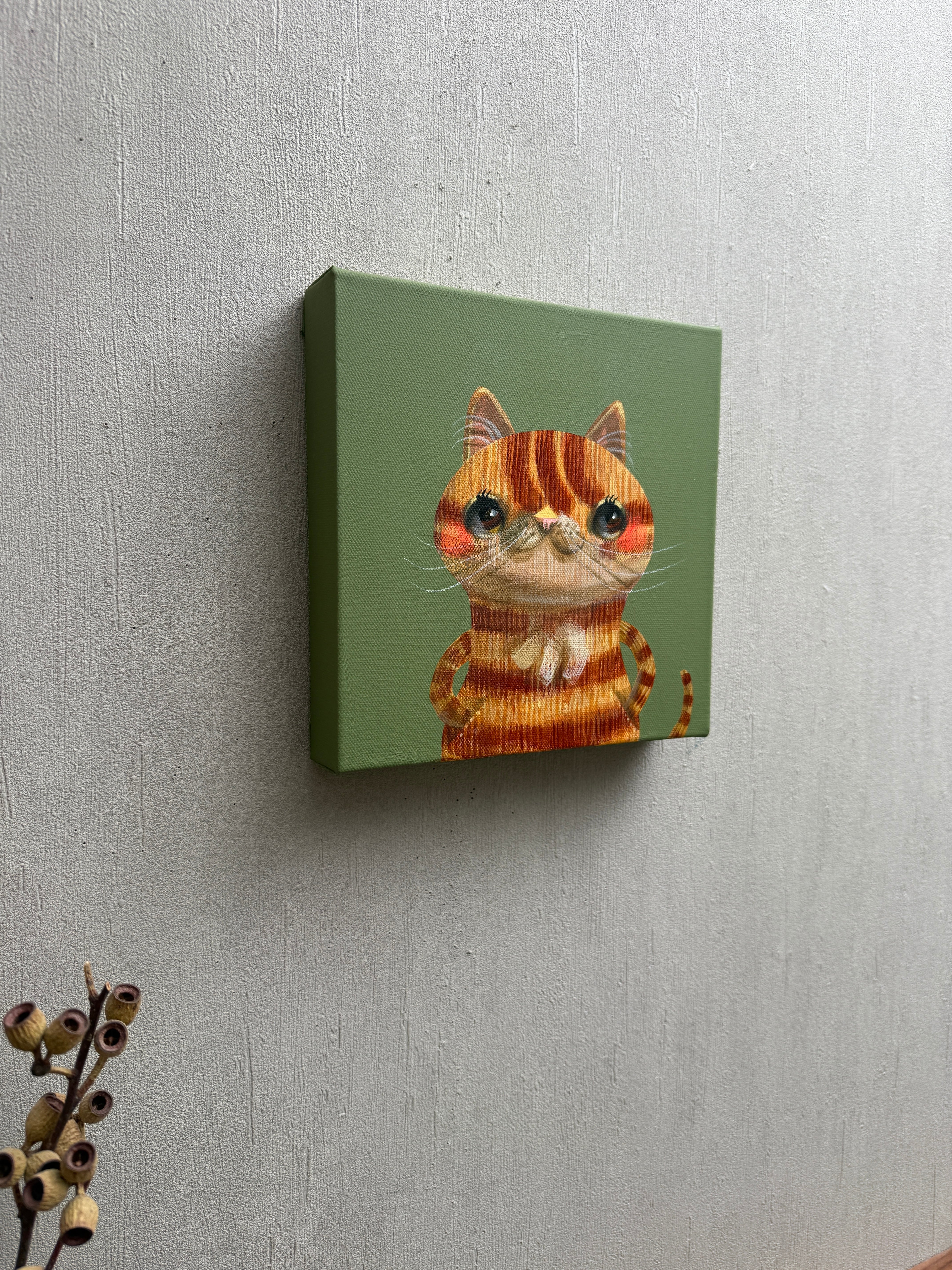 ●作品はサイドにもペイントされてる為、額なしでも展示物として成り立ちます。厚みのあるキャンバスにより壁に大きくできる影も展示の要素としてお楽しみください。