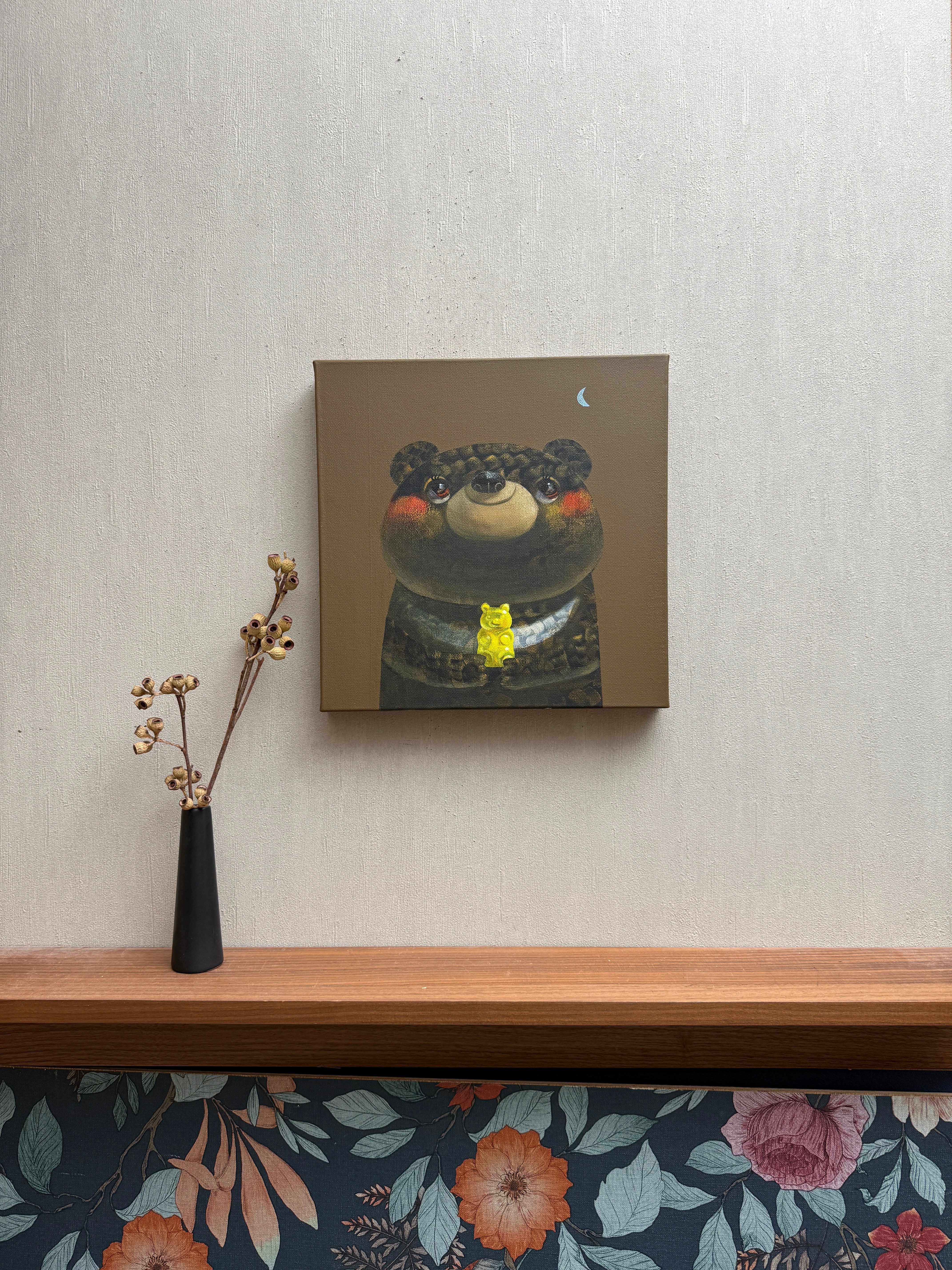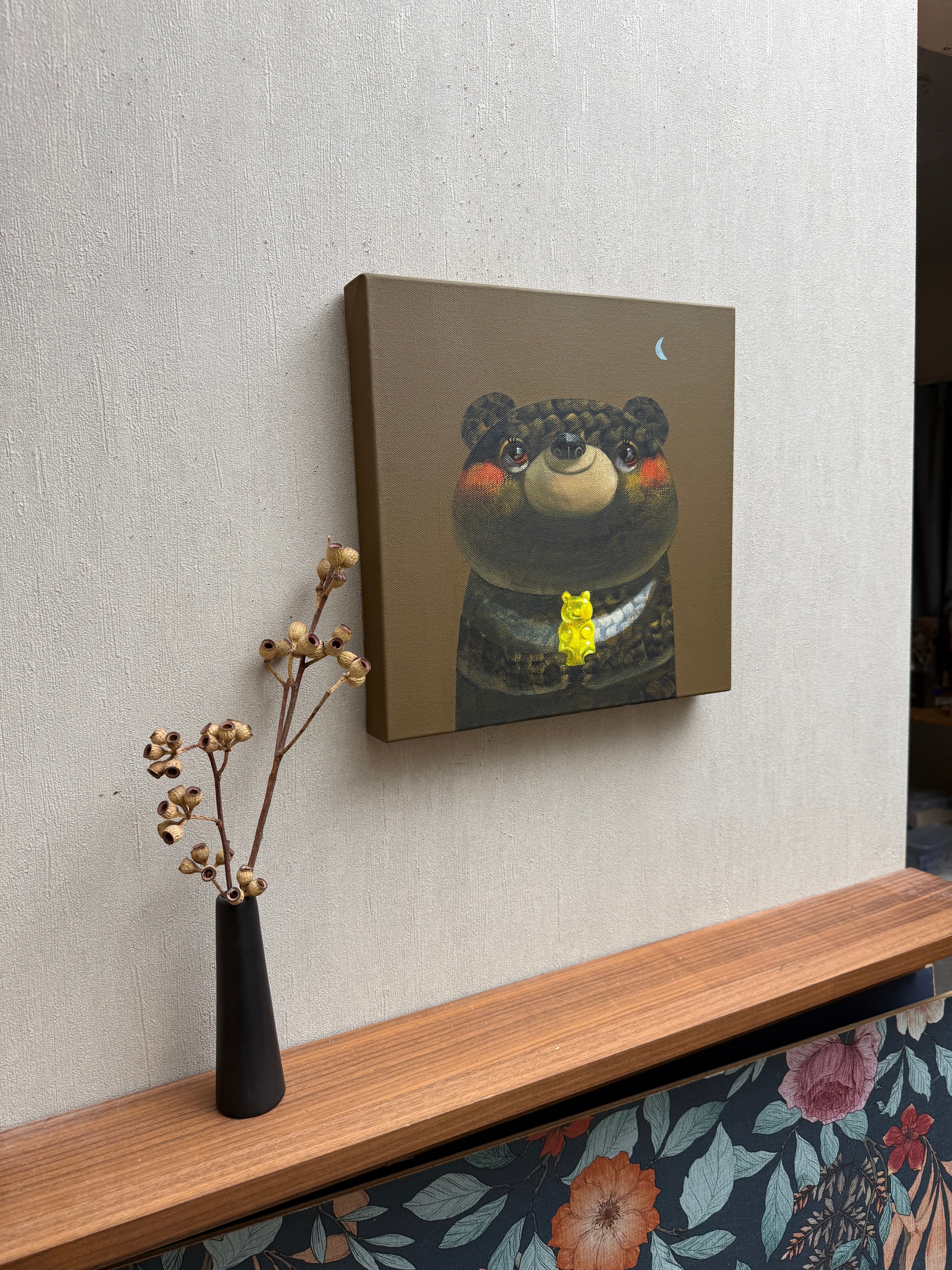 ●作品はサイドにもペイントされてる為、額なしでも展示物として成り立ちます。厚みのあるキャンバスにより壁に大きくできる影も展示の要素としてお楽しみください。